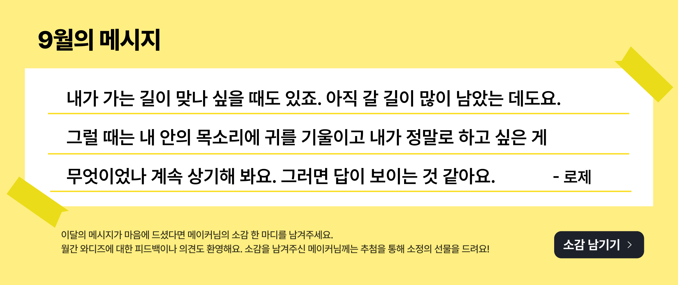 와디즈 메이커님들의 고민 1순위, 바로 스토리(상세페이지) 잘 쓰는 법이에요. 그동안 매력적인 스토리 작성을 도와드리기 위해 다양한 콘텐츠를 소개해 드렸는데요. 이번엔 와디즈 파트너사 부동의 1위, 와디즈 메이커가 가장 많이 선택한 파트너인 뮤즈스튜디오 손혜리 대표님의 원데이 특강을 준비했어요. 와디즈 서포터 성향에 딱 맞춘 8종 템플릿을 바탕으로 매출을 바꾸는 스토리(상세페이지) 전략을 자세히 배울 수 있는 기회! 모든 카테고리에 적용 가능한 상세페이지 설계 가이드를 지금 바로 무료 VOD에서 확인해 보세요. |