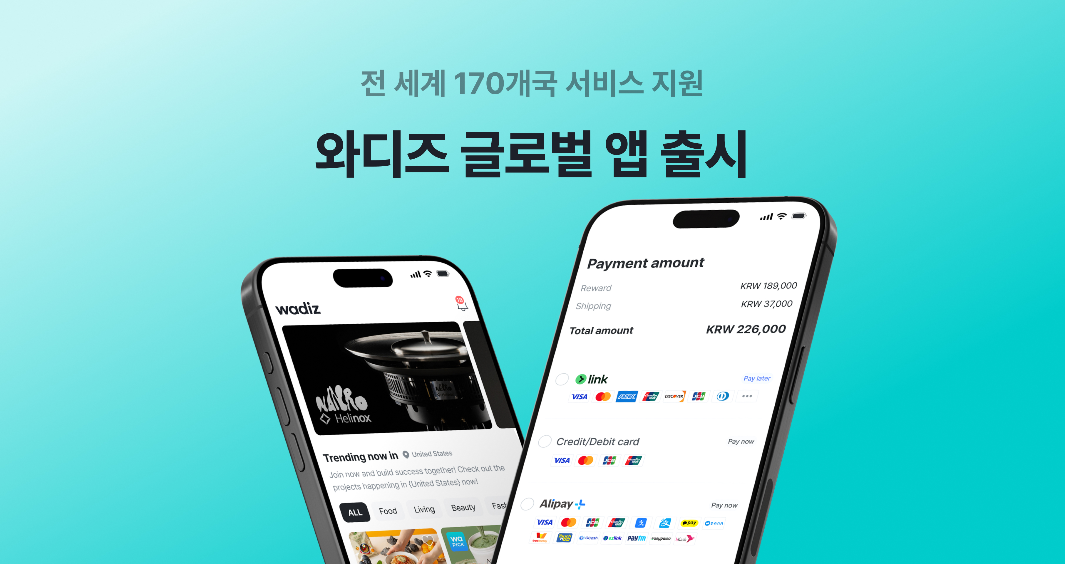 지난 5월 본격 시작한 와디즈 글로벌 서비스가 기존 웹 서비스에 더해, 170개국에서 이용 가능한 안드로이드·iOS 앱으로 서비스를 확장했어요. 이제 앱을 통해 더 많은 해외 서포터를 더 간편하게 만날 수 있게 된 셈!