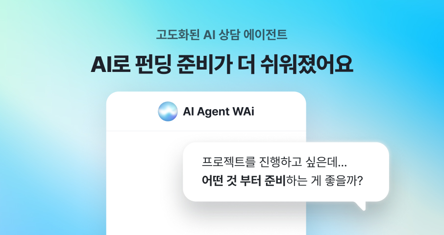 단순 문의 응대뿐만 아니라 메이커가 제품 이미지를 올리면 펀딩 성공 프로젝트를 분석한 AI가 자동으로 스토리를 작성해 주는 ‘스토리 에이전트’와, 펀딩 및 결제 현황·접속 사용자 유입 경로 등을 분석해 제공하는 ‘데이터 에이전트’ 기능이 연내 적용될 예정이라고 하니 지속적으로 발전하는 WAi와 함께 프로젝트를 준비해 보세요!